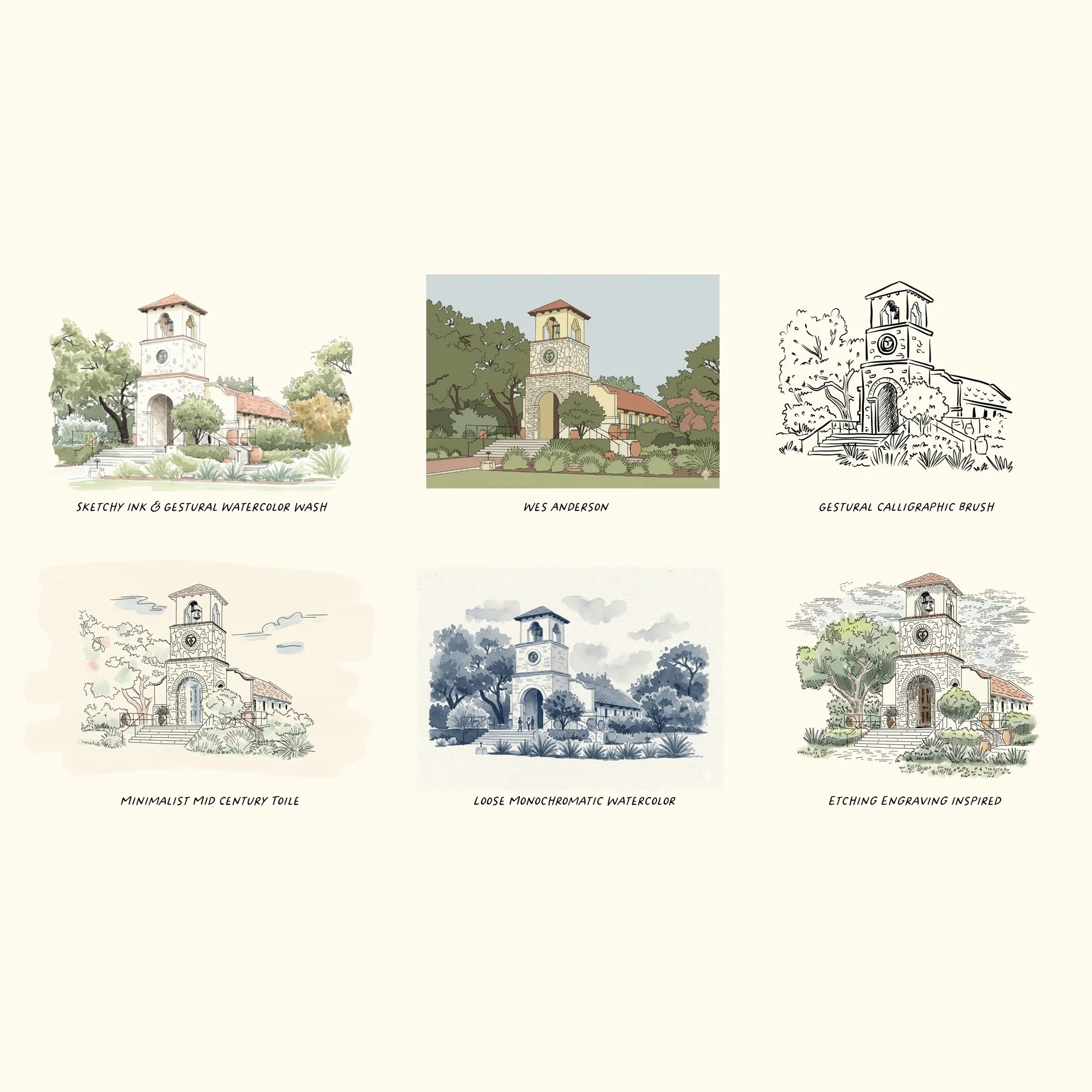 Every once in a while, I get the itch to shake things up — to take a familiar subject and run it through a handful of completely different illustration styles just to see what happens. Consider this my version of a creative costume change. This single landmark became the perfect test subject. Same building, same angle, same general composition… but six entirely different moods, techniques, and storytelling personalities.