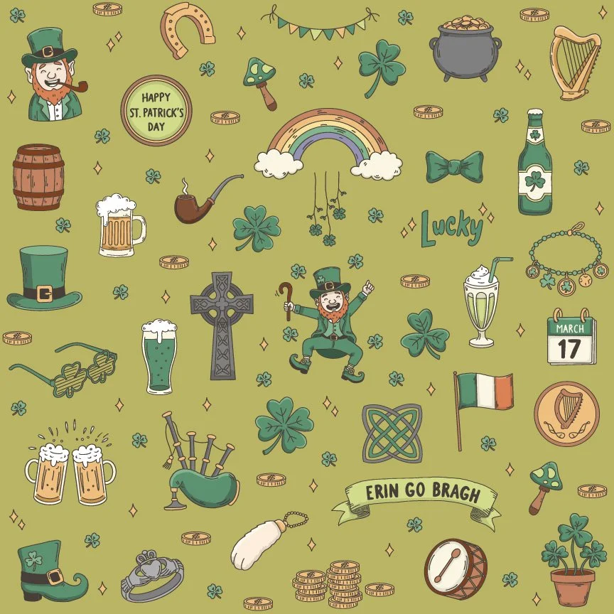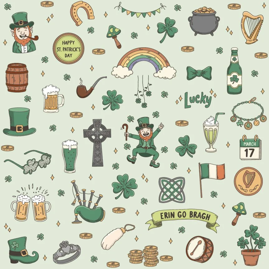 A holiday-based illustration system capturing Irish cultural symbols.