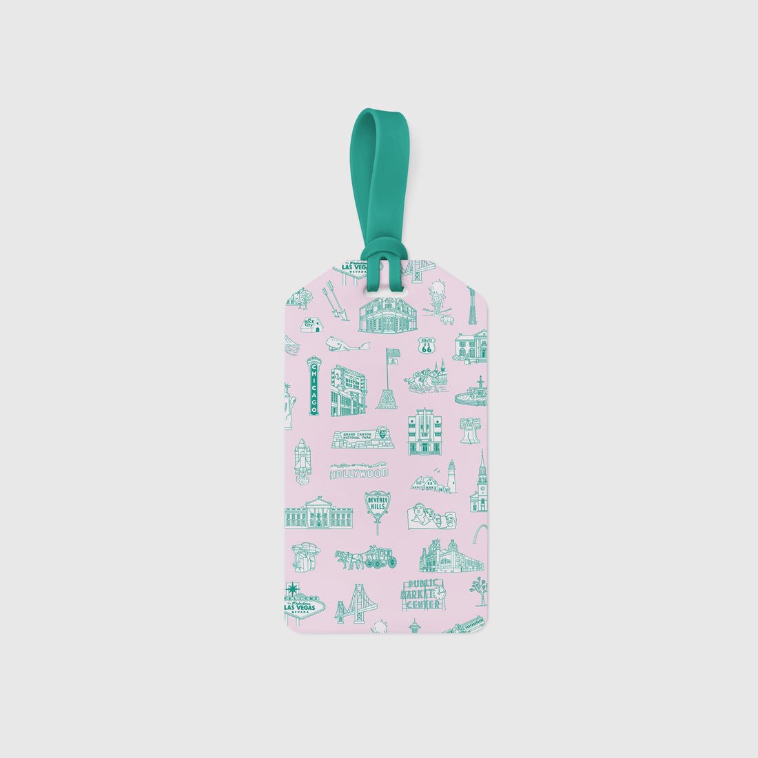 The pattern tiles seamlessly for large-format applications. Individual landmarks extract easily for spot graphics, wayfinding, or product accents. The system scales from phone cases to wallpaper installations without losing clarity.