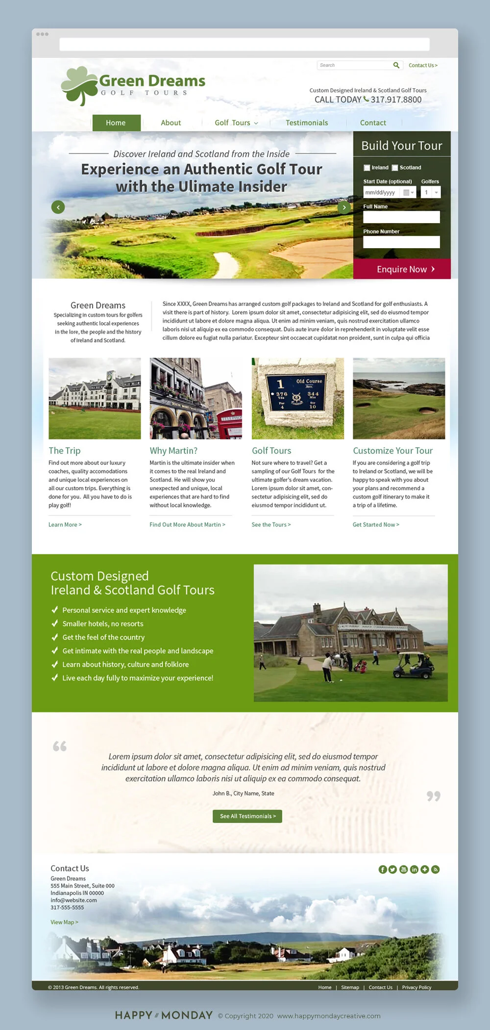 Green Dreams Golf ToursExperience an authentic, customized golf tour with the ultimate insider. Specializing in custom tours for golfers seeking authentic local experiences in the lore, the people, the history of Ireland and Scotland. Visit the Green Dreams Golf Tours website >