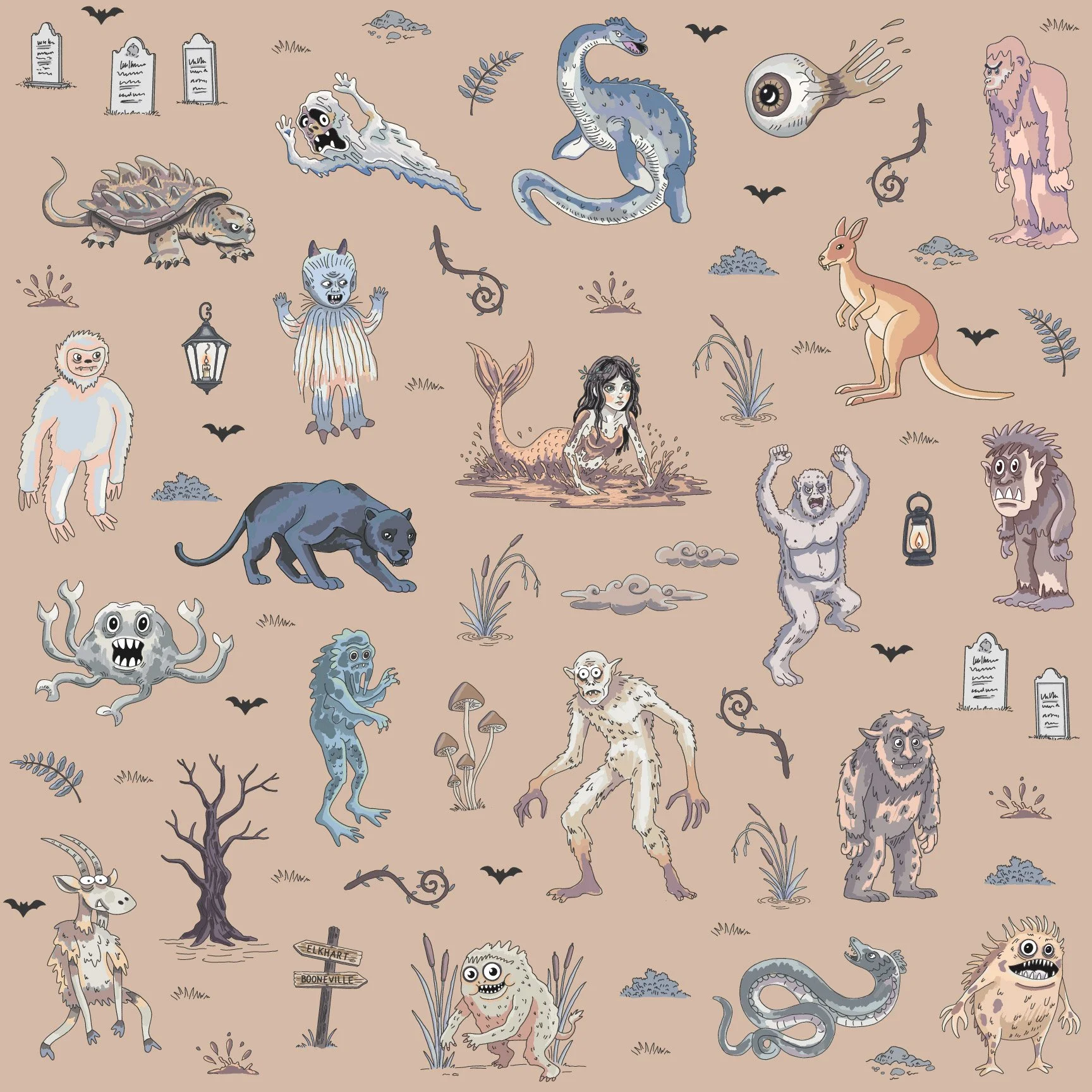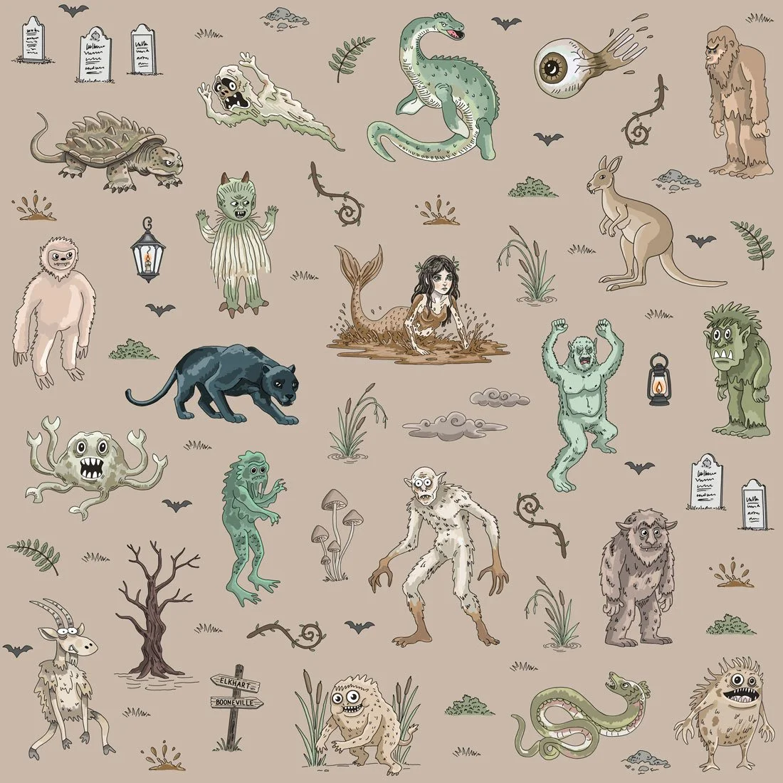 So the cryptids became a pattern — part folklore archive, part love letter to the places that take their local legends seriously.
