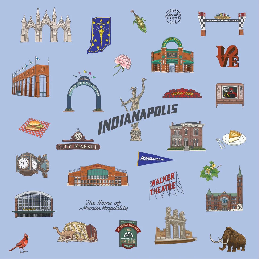 This pattern captures what makes Indy itself—the landmarks, the local legends, the food that makes no apologies, and the details you only notice when you actually live here.